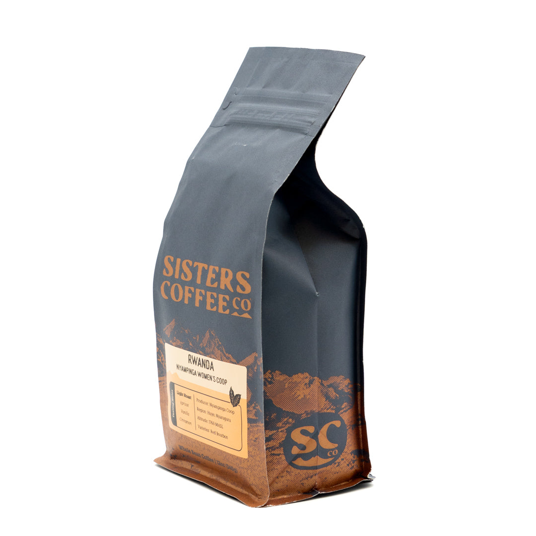 Land of a thousand hills, Rwanda sits on the southeastern edge of the East African Rift. Atop one of the thousand hills, outside Huye, is the Nyampinga Women’s Cooperative. Founded in 2014, the Nyampinga Women’s Cooperative is one of Sisters Coffee’s closest producer relationships. In 2015, the Co-op’s first export to the United States was among our first Roaster Series offerings, and their coffee is a pillar of our yearly offerings.